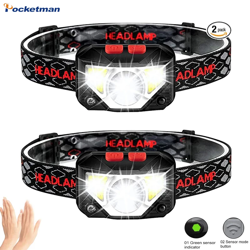 Мощные светодиодный фонарики, налобный фонарь с ИК-датчиком, перезаряжаемый Головной фонарь, масштабируемый Головной фонарь, водонепроницаемый уличный фонарь для кемпинга