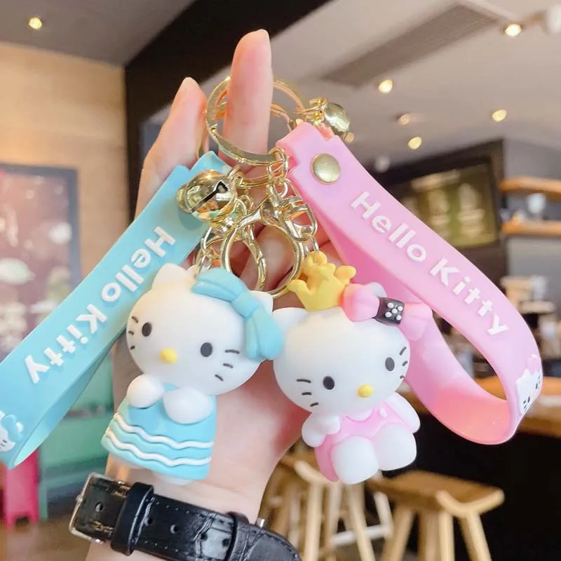 Брелок для ключей Hello Kitty для мужчин и женщин, мультяшный мягкий резиновый брелок для ключей от детей и кукол из ПВХ с милым котом, Маленькая подвеска для сумки, аксессуары