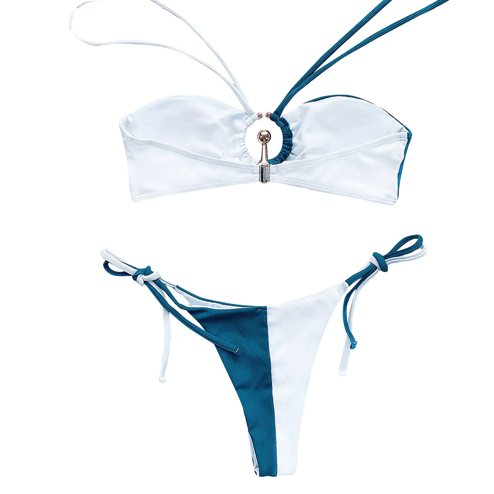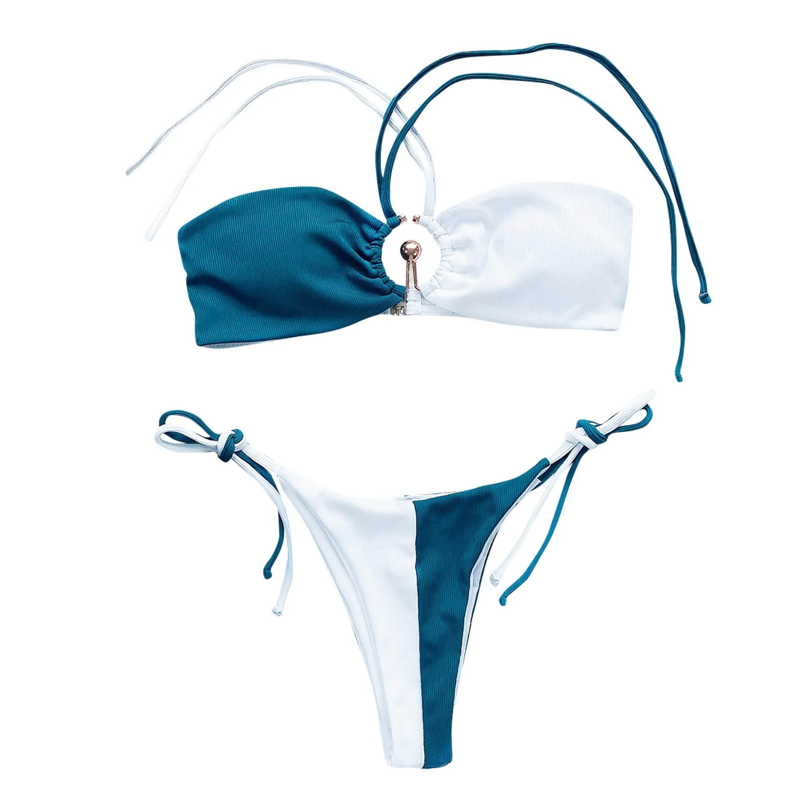 Сексуальный Женский Купальник, новинка 2022, купальные костюмы, микро-бикини с воротником хомутиком, Раздельный Купальник из двух частей, женская одежда, Женский Купальник