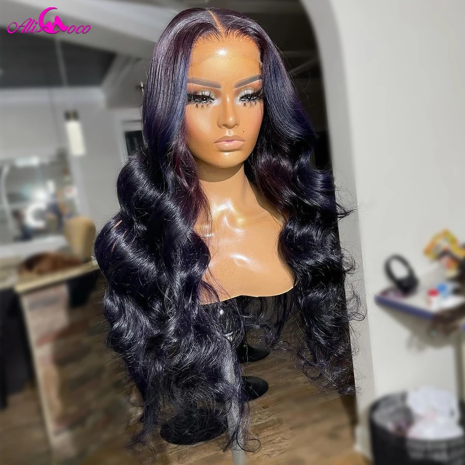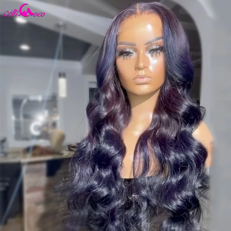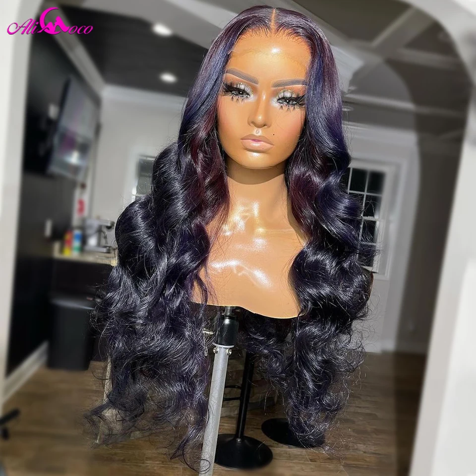 Темно-фиолетовый 13x 4 парик из человеческих волос на сетке спереди для женщин 180% предварительно выщипанные волнистые бразильские волосы Remy
