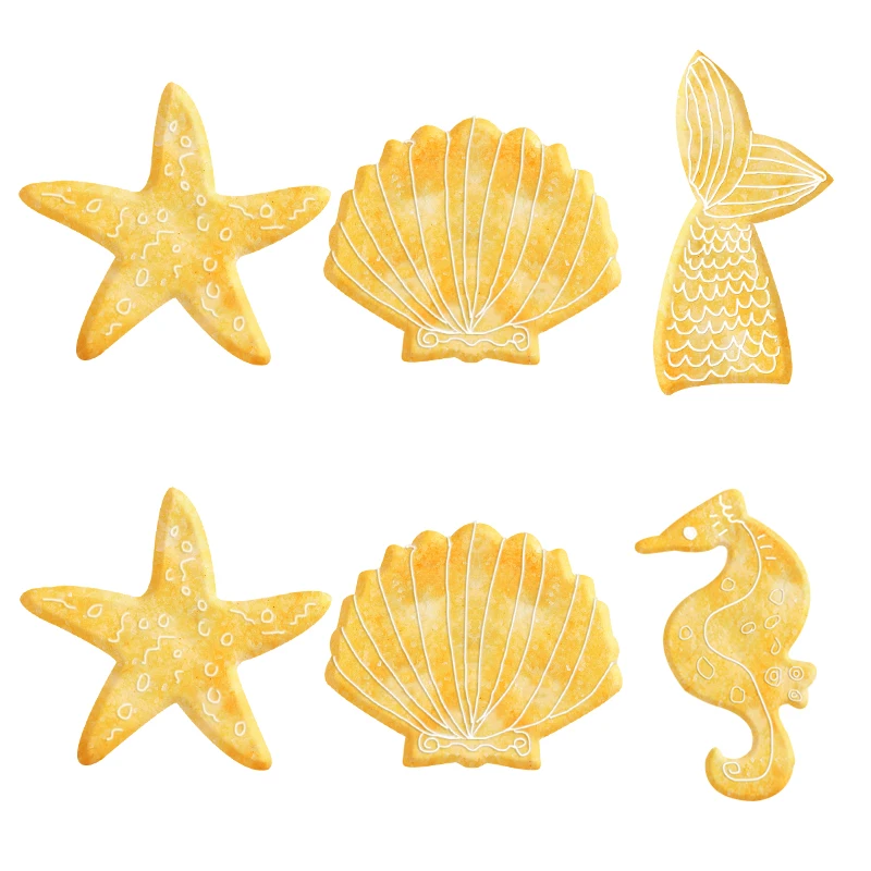 Сахарное печенье в морском стиле, резак для морского конька, морской звезды, ракушки, форма для печенья, украшение для дня рождения в виде русалки, печенье, инструмент для выпечки