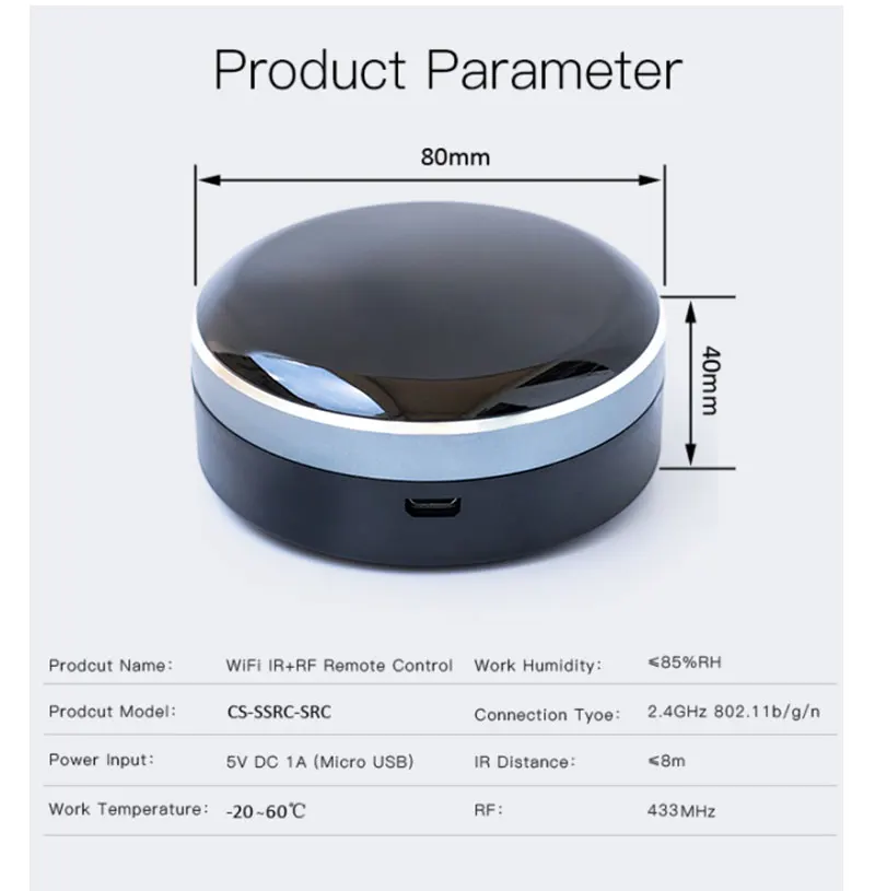 Массивная инфракрасная библиотека кодов в облаке (постоянно обновляется), одна клавиша сопряжения бытовой техники. Если это бренд, которого нет в списке, или библиотека кодов этого бренда потерпела неудачу, вы можете использовать функцию обучения (DIY custom) чтобы скопировать команды кнопок дистанционного управления на панель дистанционного управления в приложении для управления устройством.