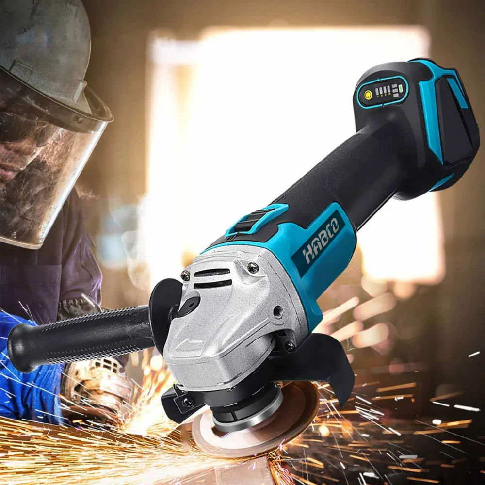 Беспроводная бесщеточная компактная угловая шлифовальная машина (болгарка) c двумя АКБ, зарядкой и пластиковым кейсом - отличный и качественный помощник в быту и по работе.УШМ HABCO входит в семейство инструментов на единой аккумуляторной системе OnePower (30+ инструментов, в том числе подходят батареи Makita). Аккумуляторы этой серии надежно защищены от перегрузок, перегрева и саморазряда. При этом быстро заряжаются и обеспечивают стабильную работу на все время использования. Линейка OnePower постоянно усовершенствуется и расширяется.УШМ оснащена мощным бесщеточным двигателем, который разгоняет скорость вращения шпинделя до 8500 оборотов в минуту.Удобно "сидит" в руке, по мощности не сильно уступает проводной УШМ, легко справится с металлопрофилем, арматурой и др.3 скорости вращения для оптимальной работы устройства.Полная комплектация, можно сразу приступать к работе, АКБ с уровнем заряда.Цвет: синийОб/мин: 8500 об/мин 125 ммРазмер патрона: 6 ммДиаметр шпинделя: 14 ммДиаметр шлифовального круга: 125 мм.Комплектация