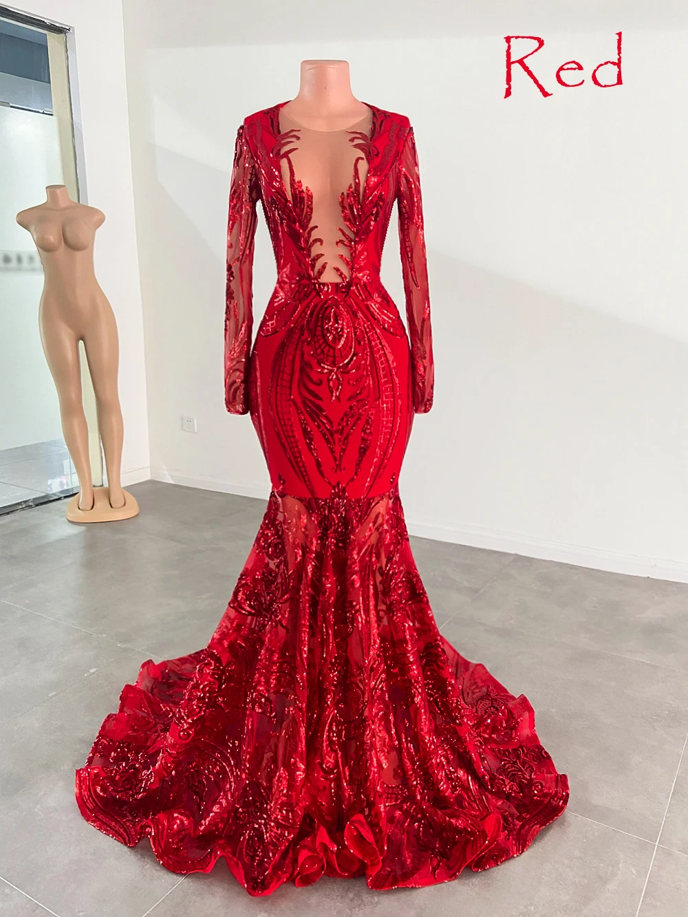 Женское платье-Русалка с длинным рукавом и V-образным вырезом