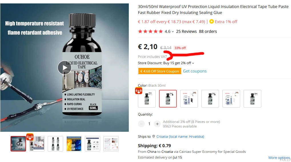 Мне пришлось снова платить налог в моей стране, потому что СРО обманул меня и не сообщил, что налог был уплачен. Таким образом, продавец занимается мошенничеством, потому что он не хочет возвращать деньги, которые он не заплатил. Он просит товар обратно, и я заплатил ему € 3,50 + € 3 налога, и теперь мне все еще нужно заплатить € 7 за обратную доставку. Ну, я не сумасшедший, просто дополнительные колеса. Продавец-мошенник, будьте осторожны!