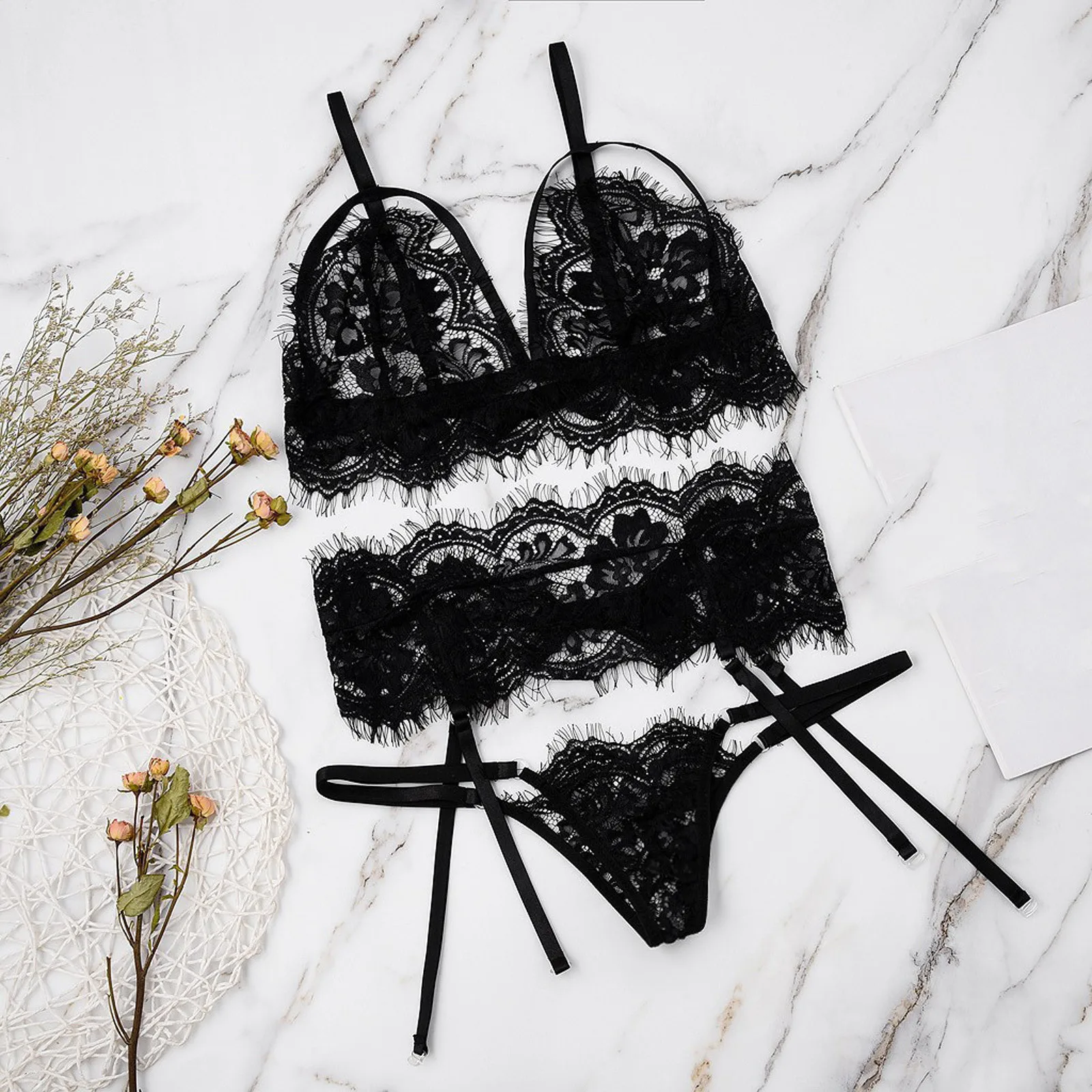 Сексуальное нижнее белье, кружевной комплект из 3 предметов, привле...