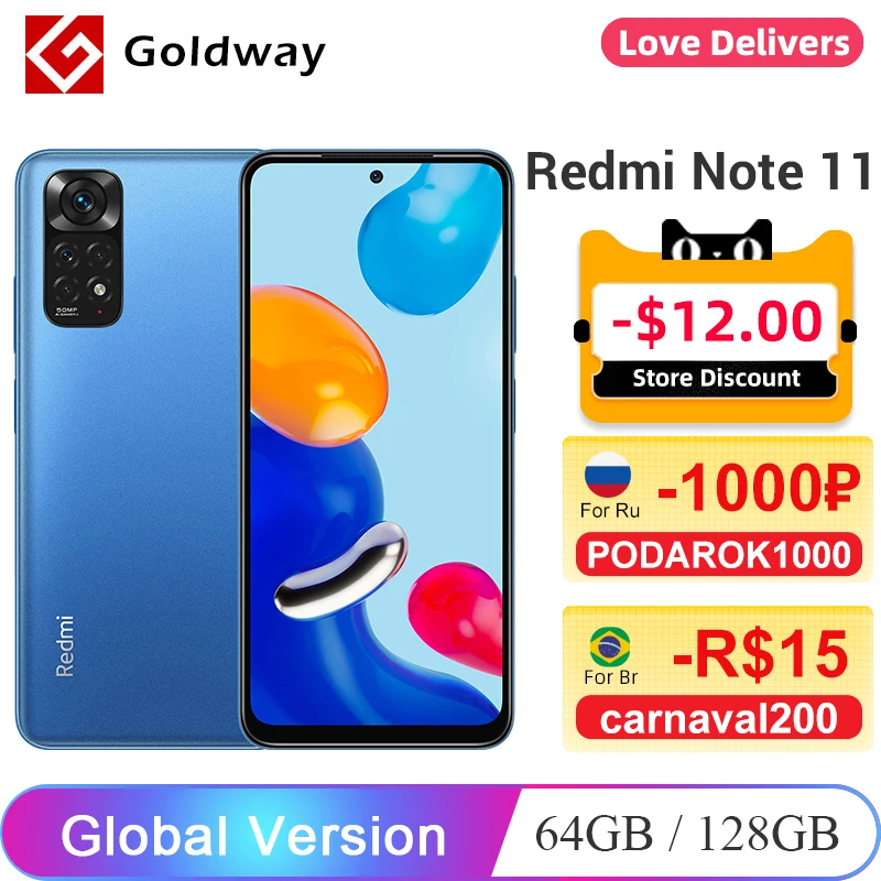 Глобальная версия Xiaomi Redmi Note 11 64 Гб 128 Гб Смартфон Snapdragon 680 90Гц AMOLED DotDisplay 50Мп Четыре Камера 33Вт 5000мАч
