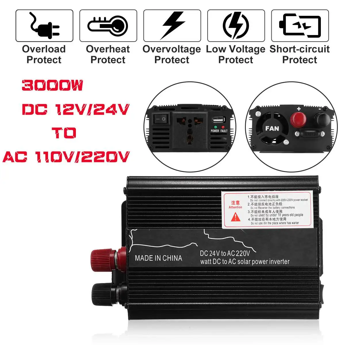 Портативный автомобильный преобразователь напряжения 3000 Вт, 12 В24 В постоянного тока в 110 В220 В переменного тока, зарядное устройство, конвертер, адаптер, универсальная розетка, автомобильные аксессуары