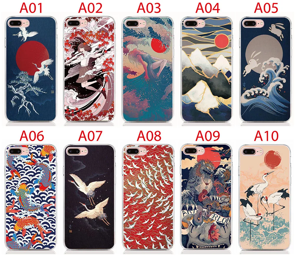 For Realme C11 2021 / 8 4G / 8 Pro 4G / 7 4G / 7 Pro 4G / C2 / C / X3 / X2 Pro / X2 / X / X Lite Silicone Case Print Cartoon Wave Art Japanese Cover Coque Shell Phone Case 1pcs/lot