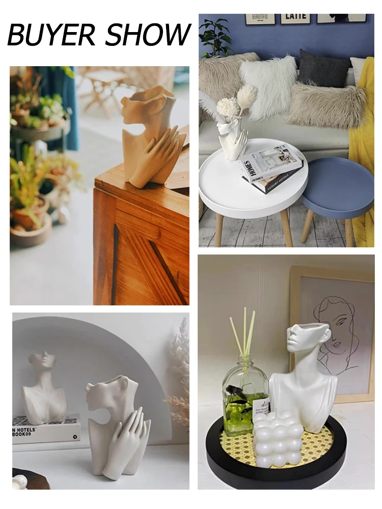 Ваза для цветов в скандинавском стиле с половинчатым лицом, ваза для цветов, керамическое искусство, украшение для дома, аксессуары, современный Декор для дома и офиса