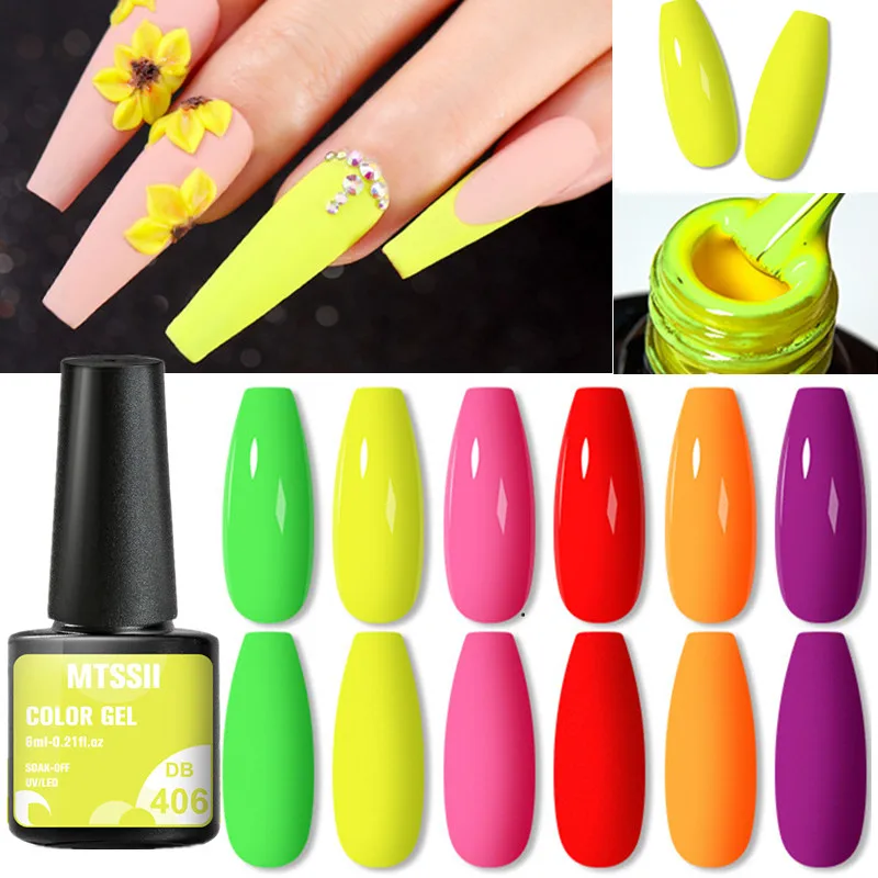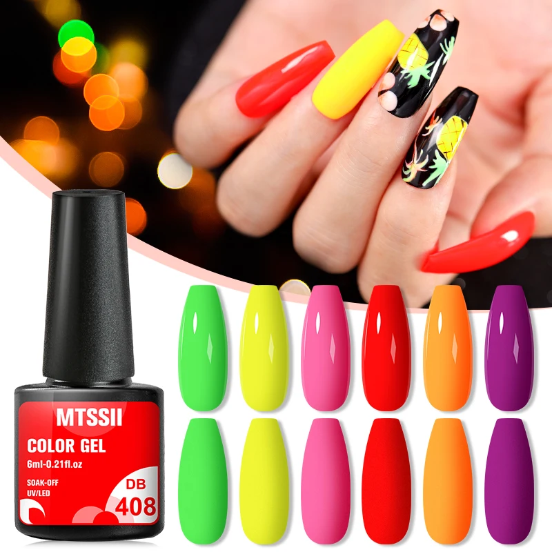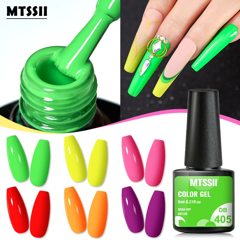 Флуоресцентный Гель-лак для ногтей Mtssii неоновый желтый зеленый синий цветной гель Полупостоянный отмачиваемый УФ-Гель-лак для ногтей базовый топ