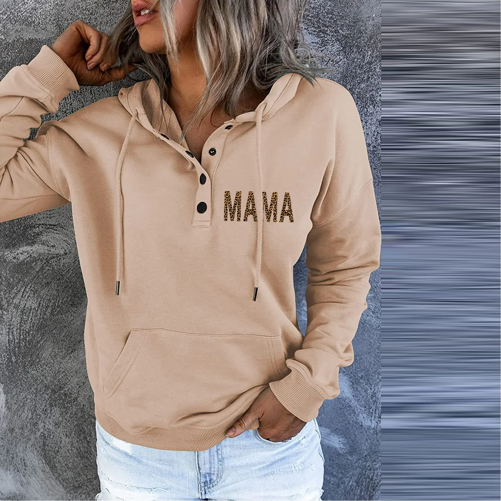 Однотонные толстовки, женские свитшоты с капюшоном, Осенние Топы с длинным рукавом, Пуловеры на пуговицах с принтом для мамы, толстовка в стиле Харадзюку, Толстовки, Толстовки
