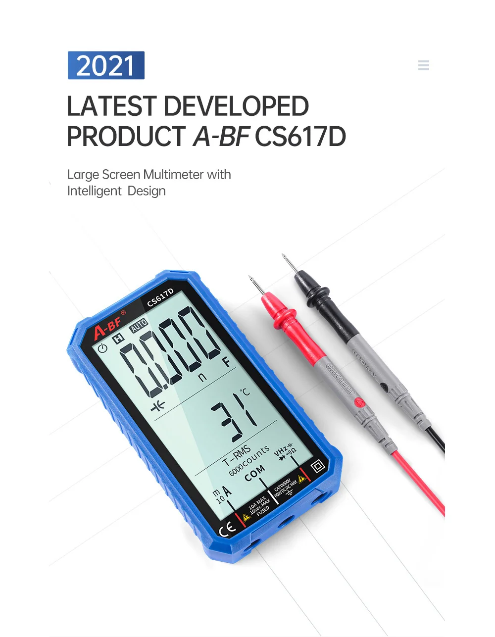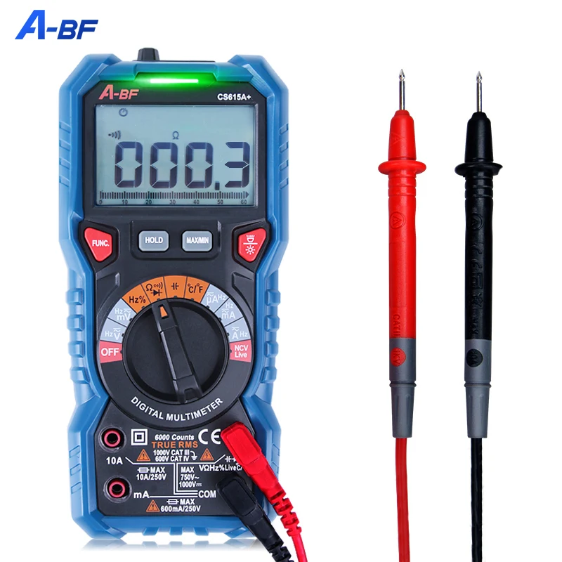 A-BF CS617D ЖК-цифровой умный мультиметр 6000 отсчетов истинный RMS DC напряжение переменного тока сопротивление температуры конденсатор диод NCV Hz DMM