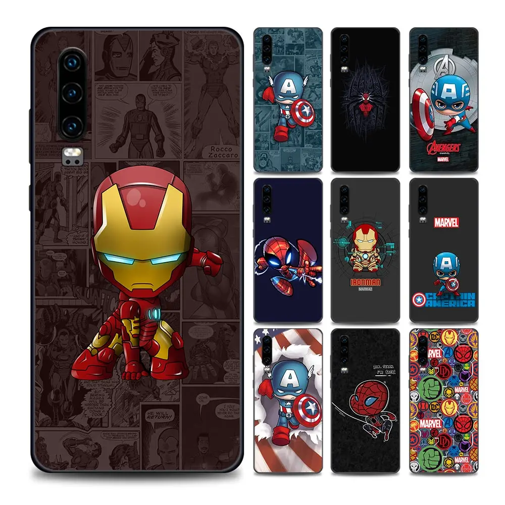 Чехол для Huawei P10 Lite P20 Pro P30 Pro P40 Lite P50 Pro Plus P Smart Z, мягкий силиконовый чехол с Марвел, Железный Человек-паук, Капитан Америка