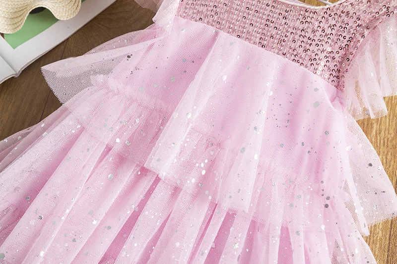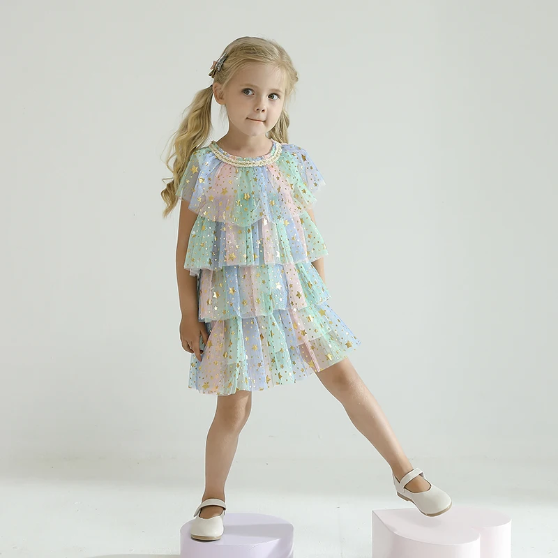 Детское летнее платье для девочек, новое многослойное платье с блес...