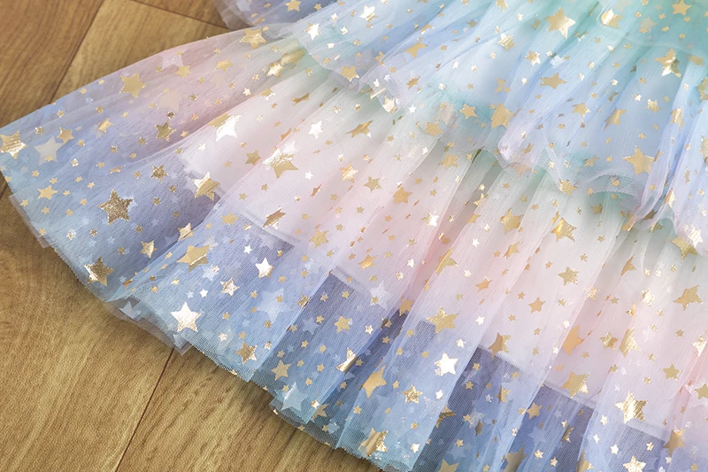 Летнее многослойное платье для девочек, Тюлевое платье-пачка с пышными рукавами со звездами, детское красное Новогоднее платье, элегантное платье для праздвечерние