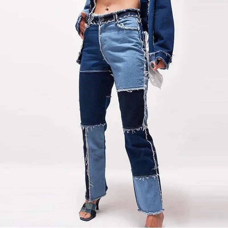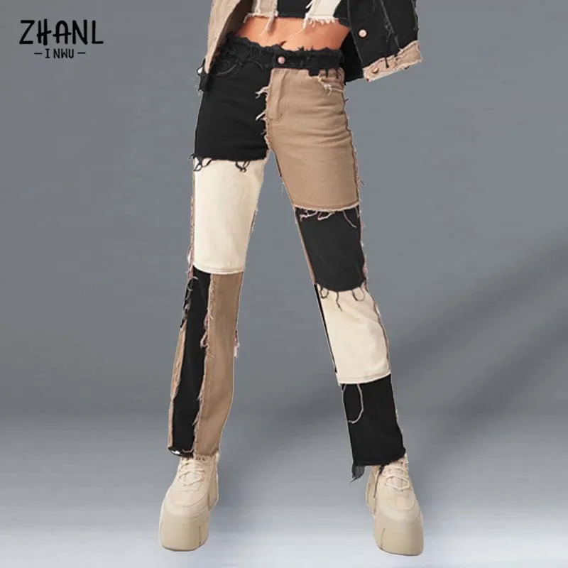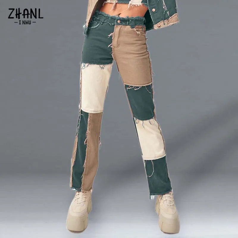 Джинсы женские коричневые в стиле пэчворк, ковбойские брюки с завышенной талией, уличные повседневные свободные прямые джинсы, модные брюки из денима, Y2k, весна