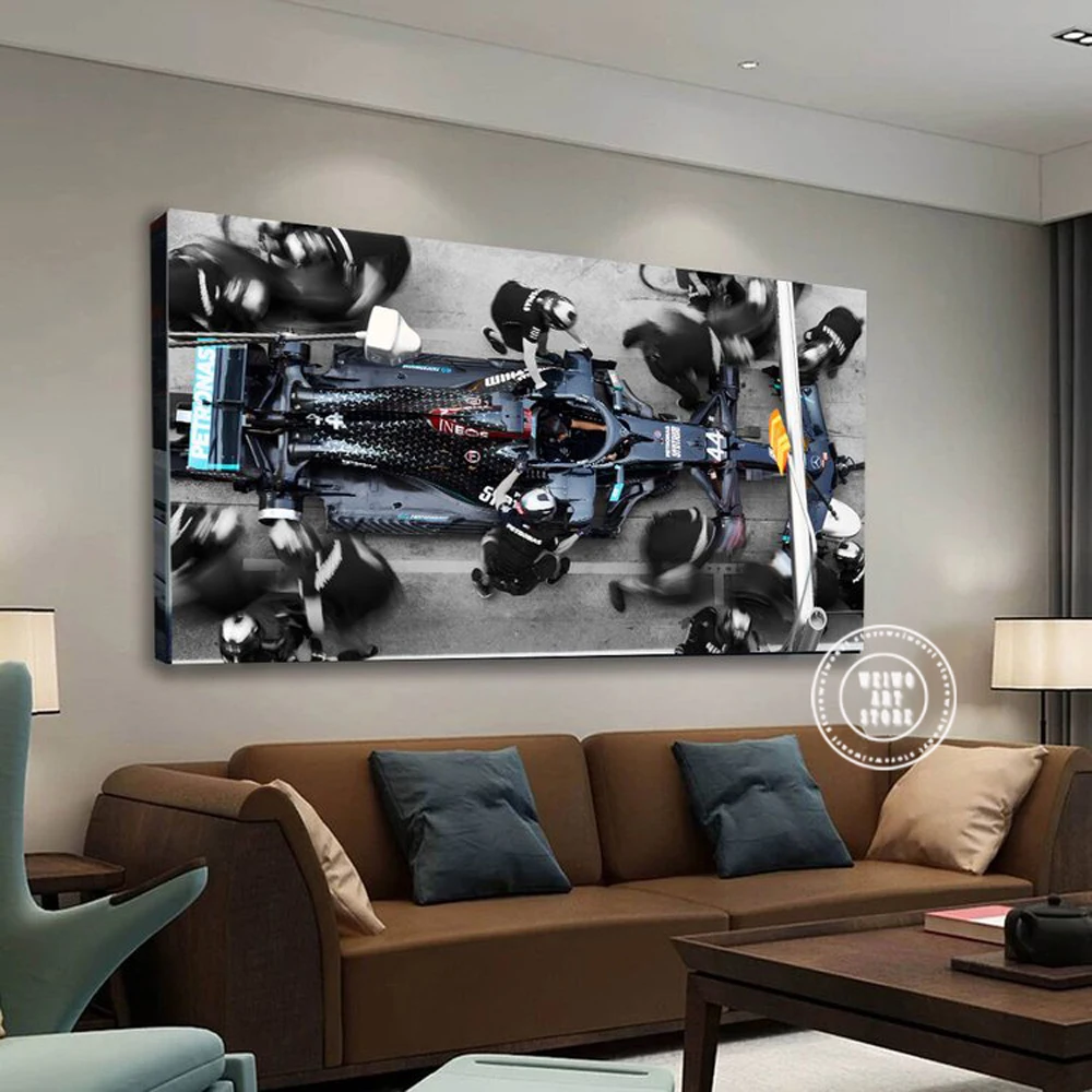 Плакат Формула 1 для Mercedes-AMG Питстоп F1, Картина на холсте, современные гоночные автомобили, настенные художественные принты, картина для украшения гостиной
