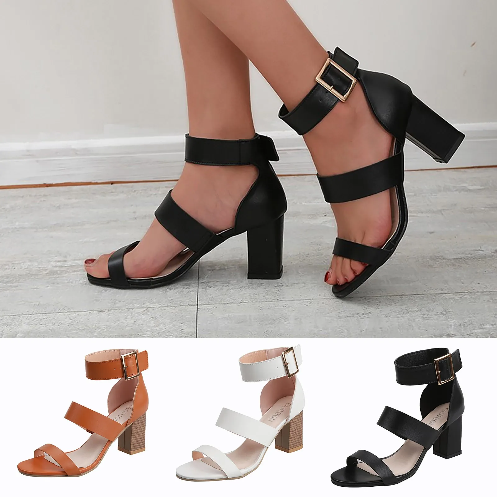 Босоножки женские однотонные на молнии, Модные дышащие туфли-лодочки с ремешком на щиколотке, на толстом устойчивом каблуке, вечерняя Обувь, #35