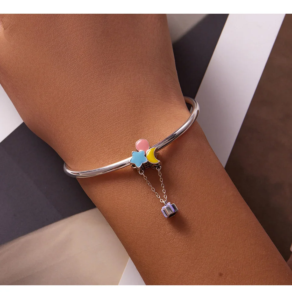 WOSTU, стерлинговое серебро 925 пробы, кулон с шармом в виде звезды и луны, браслет, браслет, эмалированный шарм сделай сам, женские ювелирные украшения
