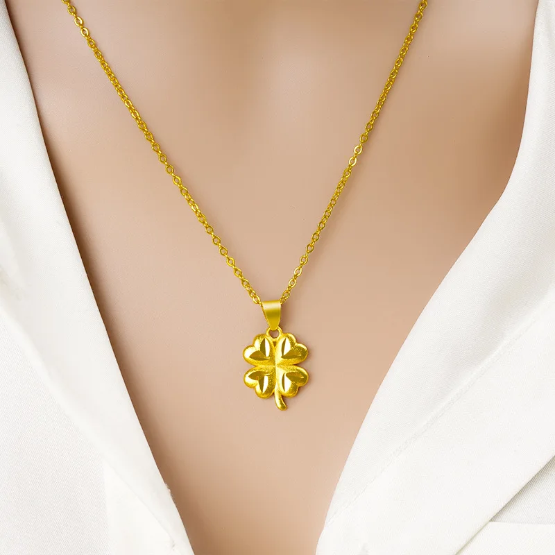 Женский чокер из 24-каратного золота, подвеска в виде четырехлистного клевера, Женская эстетика бутика, золотые свадебные украшения