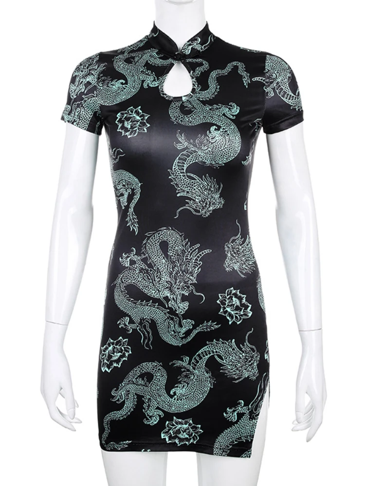 SUCHCUTE 2020 женские мини-платье с принтом в виде дракона в китайс...
