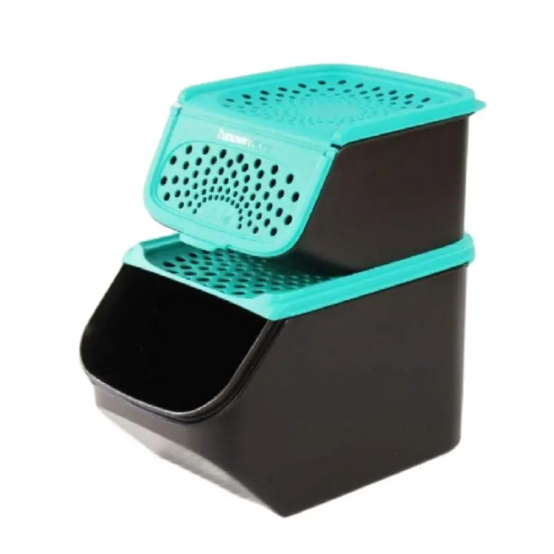 The two containers (onion and potato storage ) can be stacked without the ventilation holes being covered.