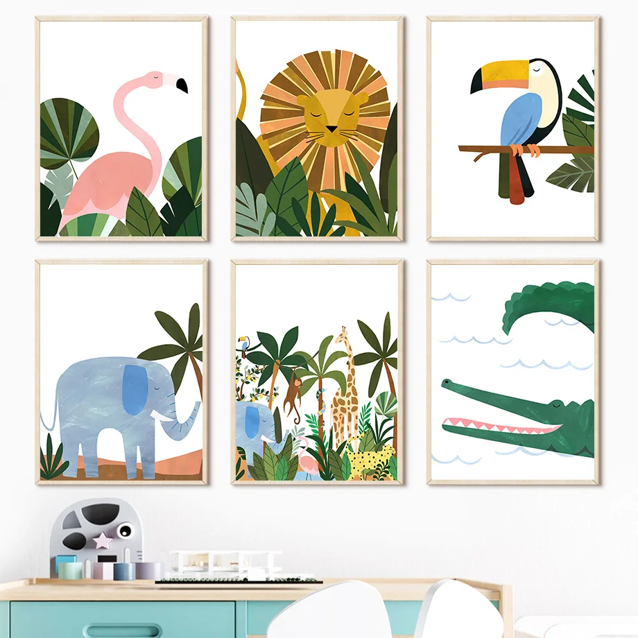 Жираф Тукан Зебра коала Лев животные детские плакаты и принты насте...