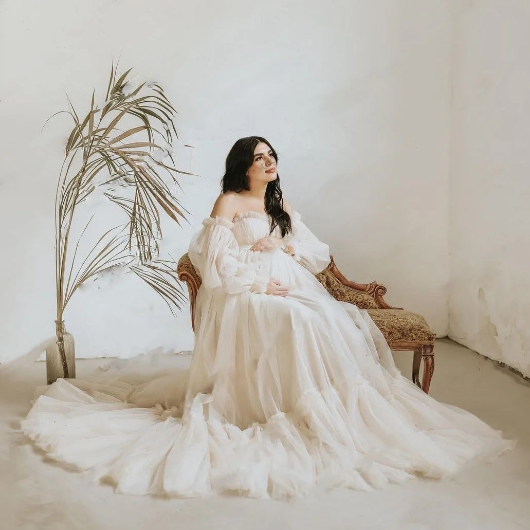 Элегантные тюлевые халаты для беременных со шлейфом, пышные рукава,...