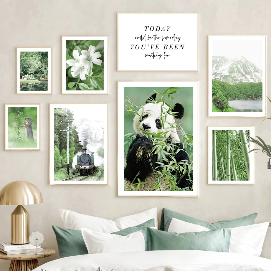 Настенные постеры с изображением гор, бамбукового леса, панды, оленя, поезда, природы в скандинавском стиле, живопись на холсте для украшения гостиной