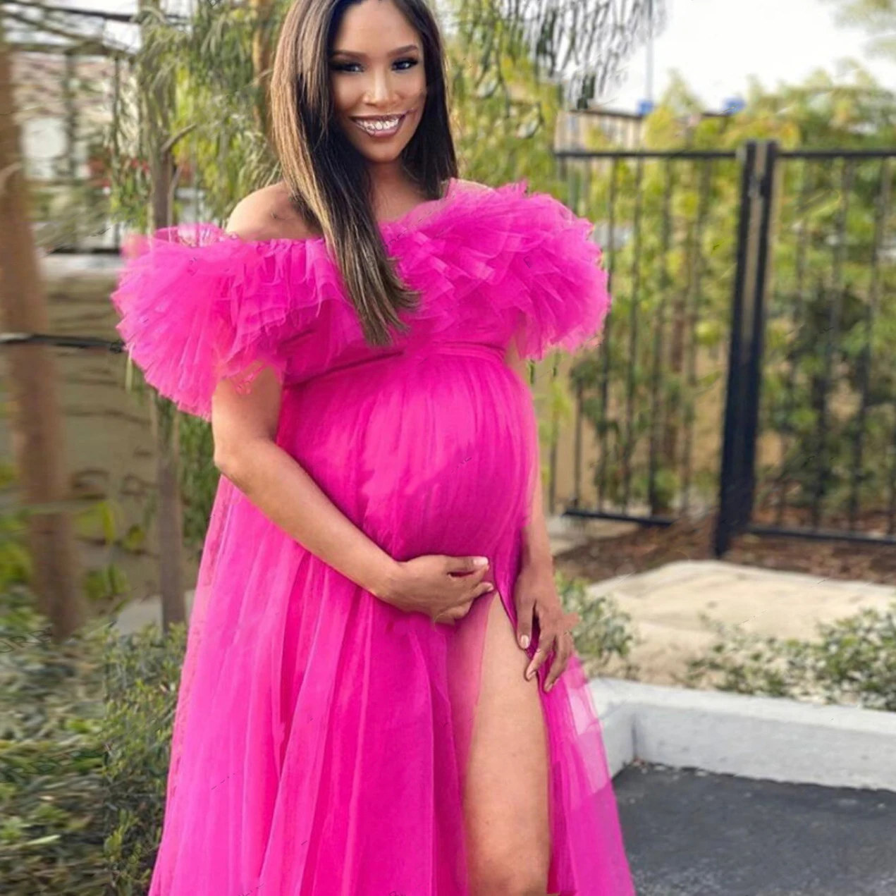 Платье для беременных, из тюля, с длинным рукавом, с пышными оборками