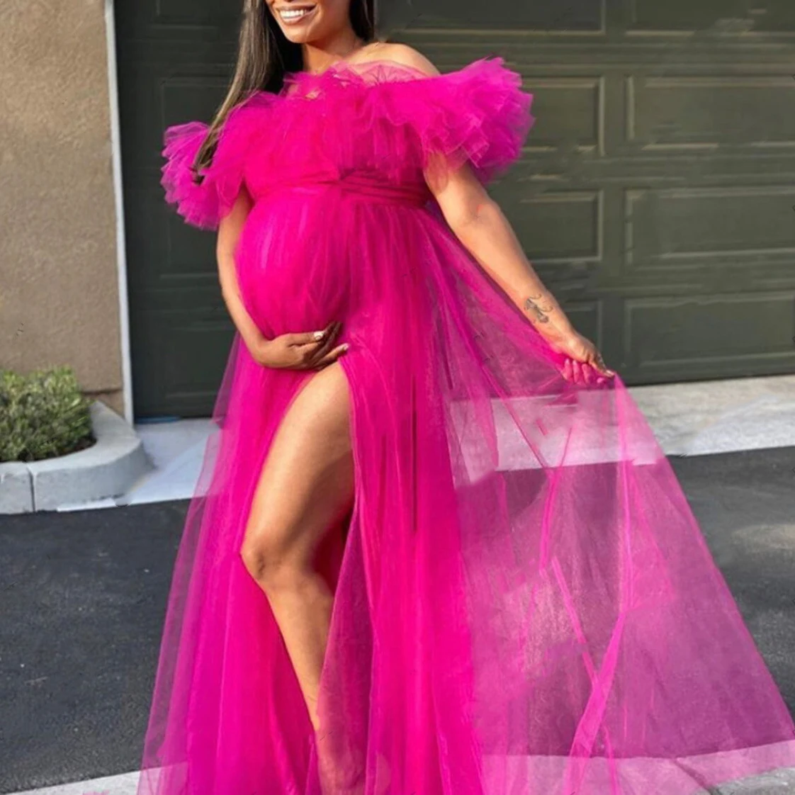 Фотосессия платья для беременных ярко-розовый халат тюлевые платья для беременных для будущей мамы длинное платье для беременных на заказ