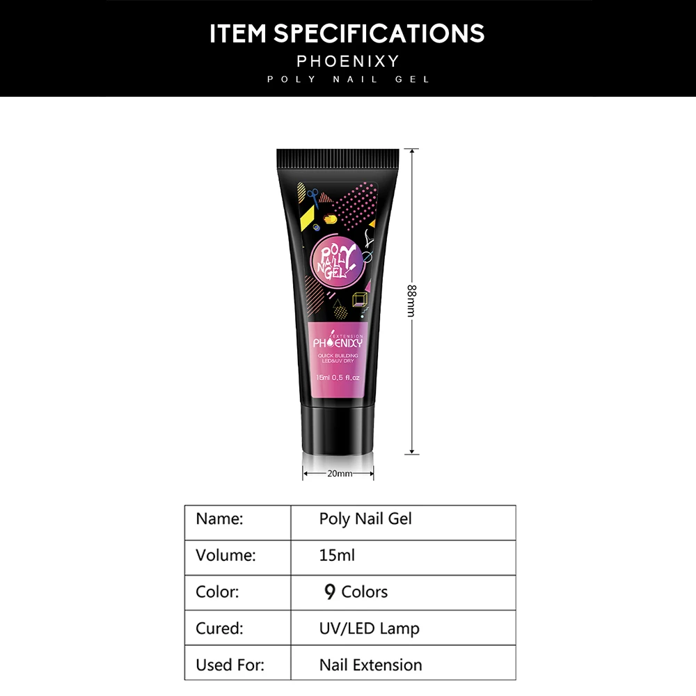 Набор для ногтей Phoenixy, 15 мл, блестящий полигель для ногтей для быстрого наращивания ногтей, полупигментный лак, цветной полигель