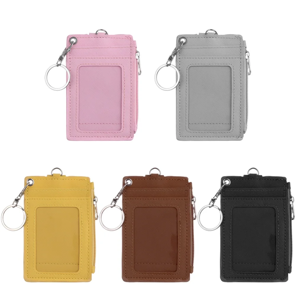 Модный держатель для визиток и карт из искусственной кожи, портативный цветной держатель для кредитных карт, чехол для автобусных карт, кошелек для монет с брелоком