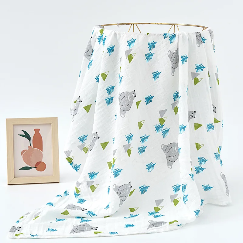 Муслиновое одеяло для новорожденных, 100% хлопок, с мультяшным рису...