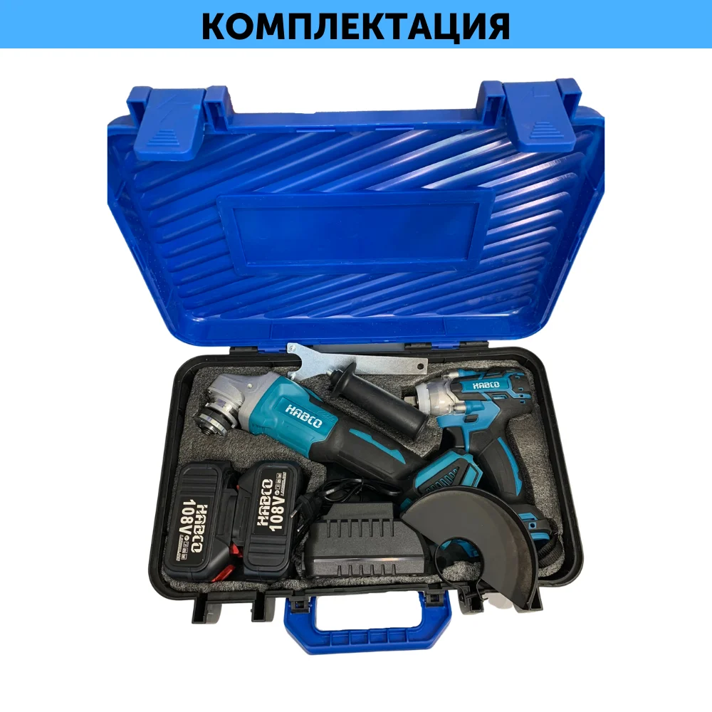 Набор 2 в 1, Гайковерт ударный бесщеточный 588 Нм и УШМ (Болгарка) 125мм аккумуляторный, 2 АКБ 4Ah 18В, ЗУ 2A, Пластиковый кейс