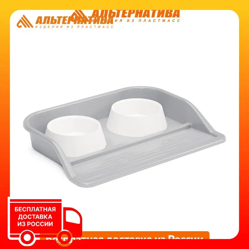 Набор c двумя мисками 0,3л для животных (на подставке)(серый) (410х300х60 мм)Арт:М8629 ЗПИ"Альтернатива"