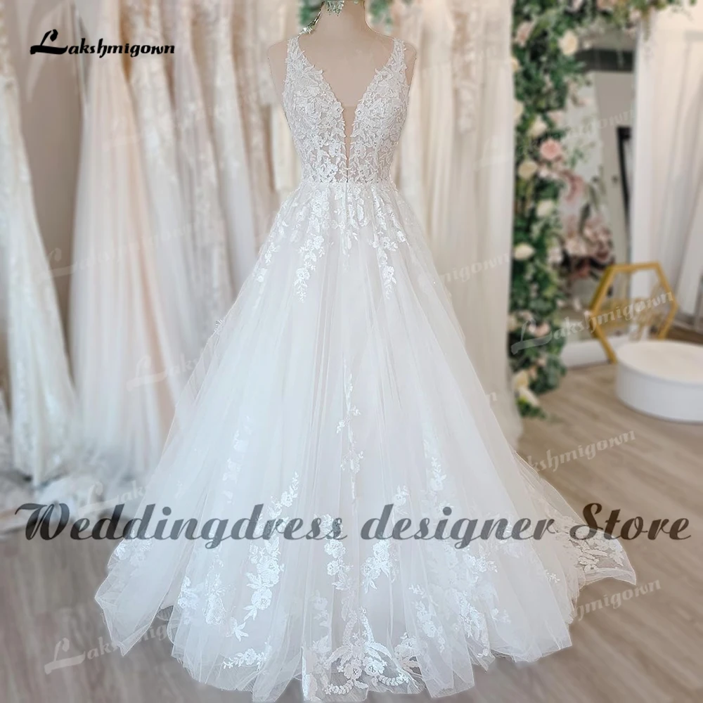 Белое свадебное платье в стиле бохо 2022, кружевные аппликации, V-образный вырез, а-силуэт, свадебные платья принцессы с открытой спиной, реальное фото, vestido de noiva praiano