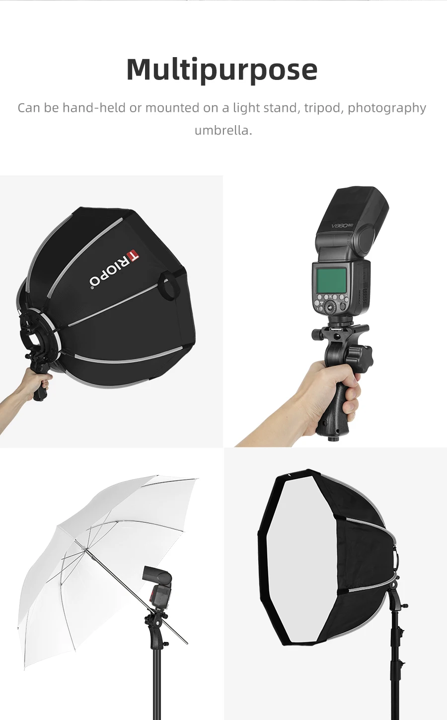 Складной восьмиугольный софтбокс TRIOPO, 55 см, 65 см, 90 см, 120 с...