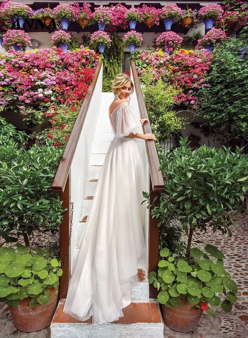 Женское свадебное платье с открытыми плечами Anna Beauty, Пляжное фатиновое платье невесты в стиле бохо с аппликацией, 2022