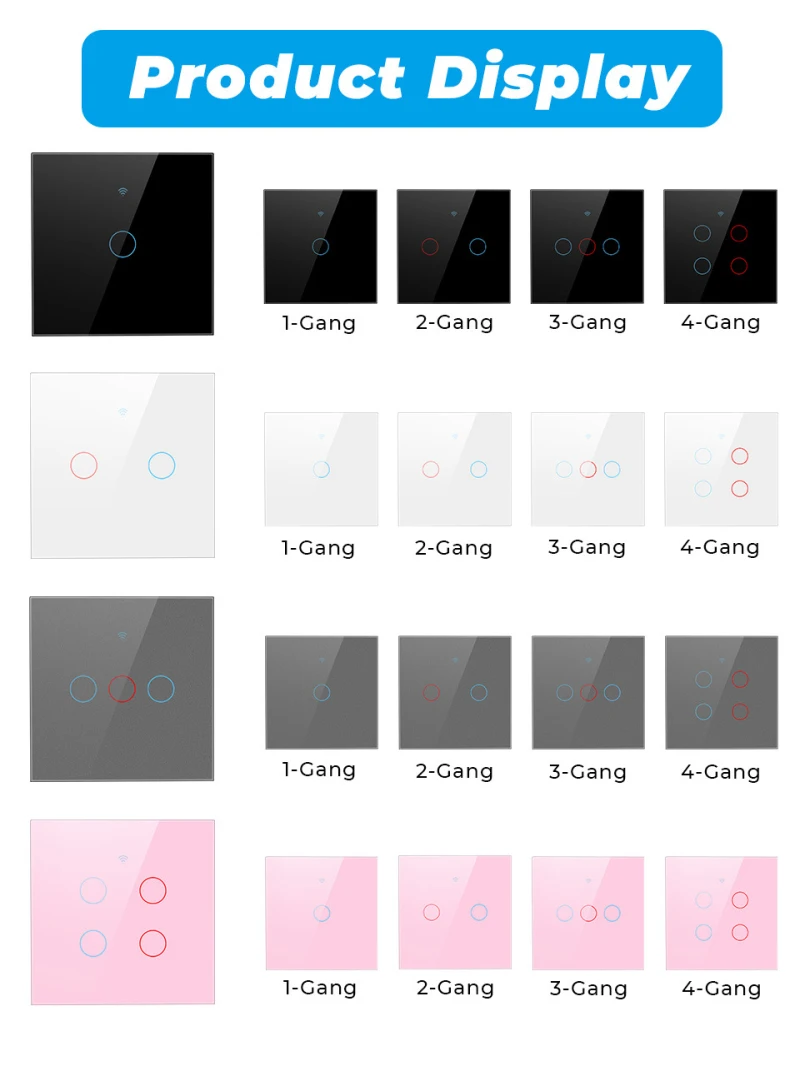Настенный сенсорный выключатель с поддержкой Wi-Fi, 1234 кнопок