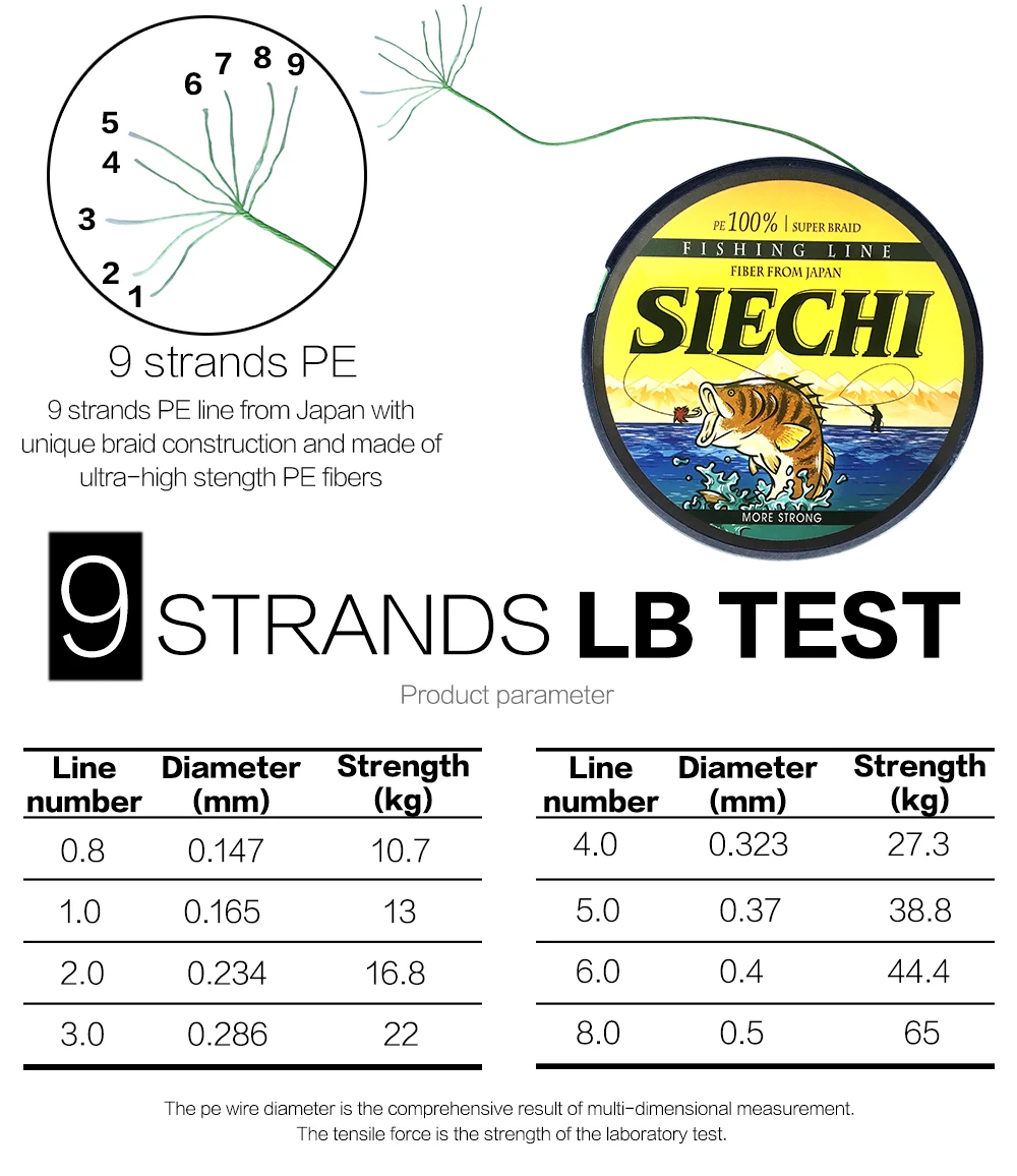 Чрезвычайно высокая прочность на диаметр.Потрясающая тонкая и чувствительная высокая прочность и долговечность.Сопротивляется «копанию» на катушке. ① Передовая широкоугольная технология-гладкая супер линия.② Улучшенная Цветостойкость.③ Длинное и быстрое литье-более гладкое, чем когда-либо.④ Супер чувствительность-мгновенное ощущение структуры и ударов.⑤ Исключительная прочность и прочностьHi доступны цвета Hi-vis и Low-vis. 【Детали продукта 】Бренд: SIECHIМодель: 9 плетеных нитейМетров: 300 м 500 м 1000 мФорма: уровеньМатериал: плетеный проводПлавучесть: плавающий9 нитей номер лески:1,0; 2,0; 3,0; 4,0; 5,0; 6,0; 8,0【Parameters】Номер лески 1,0 #: 0,16 мм/28,6 фунтов/13 кгНомер лески 2,0 #: 0,23 мм/37 фунтов/16,8 кгНомер лески 3,0 #: 0,28 мм/48,5 фунтов/22 кгНомер лески 4,0 #: 0,32 мм/60 фунтов/27,3 кгНомер лески 5,0 #: 0,37 мм/85,5lb/38,8 кгНомер линии 6,0 #: 0,4 мм/97.8LB/44,4 кгНомер лески 8,0 #: 0,5 мм/143.5LB / 65 кг[Список упаковки]1 шт. * леска 【Примечание 】Номер линии не имеет диаметра, пожалуйста, внимательно проверьте таблицу и, пожалуйста, оставьте нам сообщение, если что-то запутанное, спасибо!
