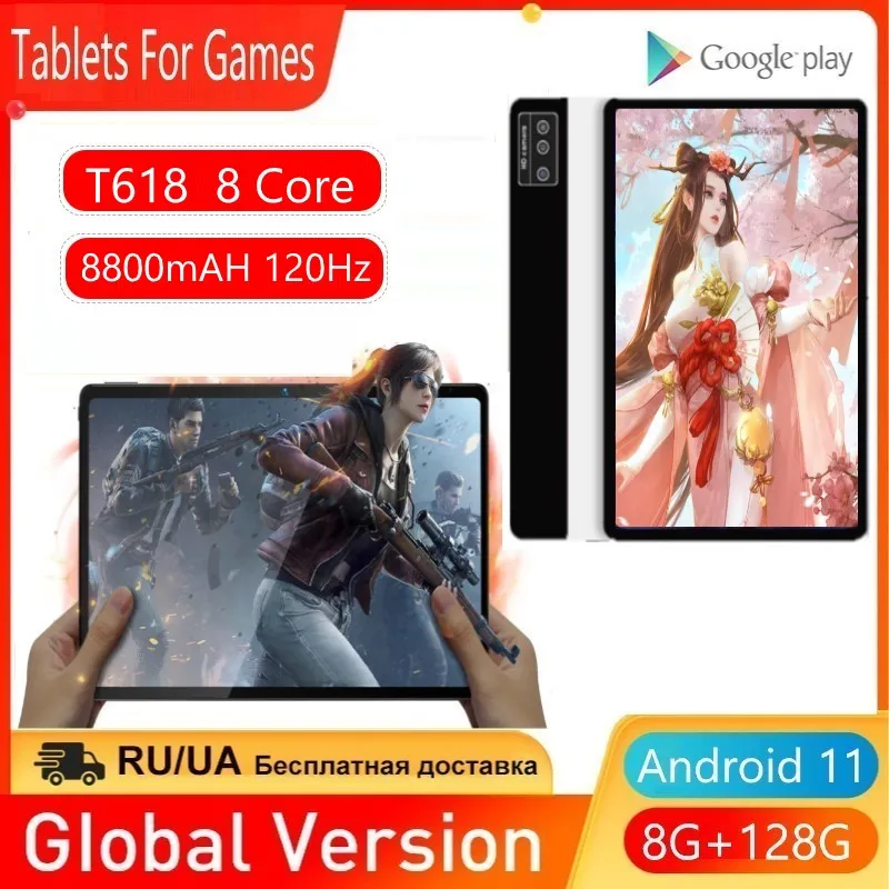 10,1-дюймовый игровой планшет, экран HD Samsung, Android 11, T618, 4G, 4K, 8 ГБ, 2022 ГБ, 8 ядер