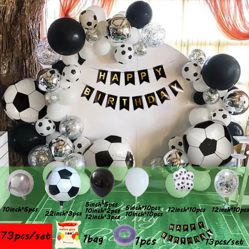 73 шт.компл. 22-дюймовая гирлянда из фольги 4D для воздушных шаров, черный и белый цвет, украшение для футбольной вечеринки, дня рождения, мальчика