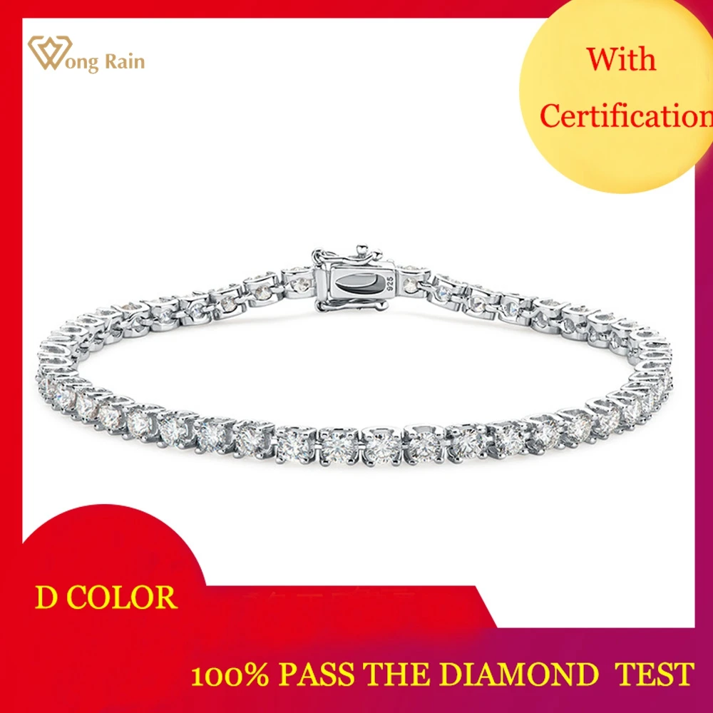 Wong Rain, Стерлинговое Серебро 925 пробы, D Цвет, VVS1, 4.6CT, настоящий Муассанит, драгоценный камень, очаровательный браслет, свадебное ювелирное изделие с GRAОсновной камень: настоящий МуассанитРазмер камня: 3 мм/4,6 CT