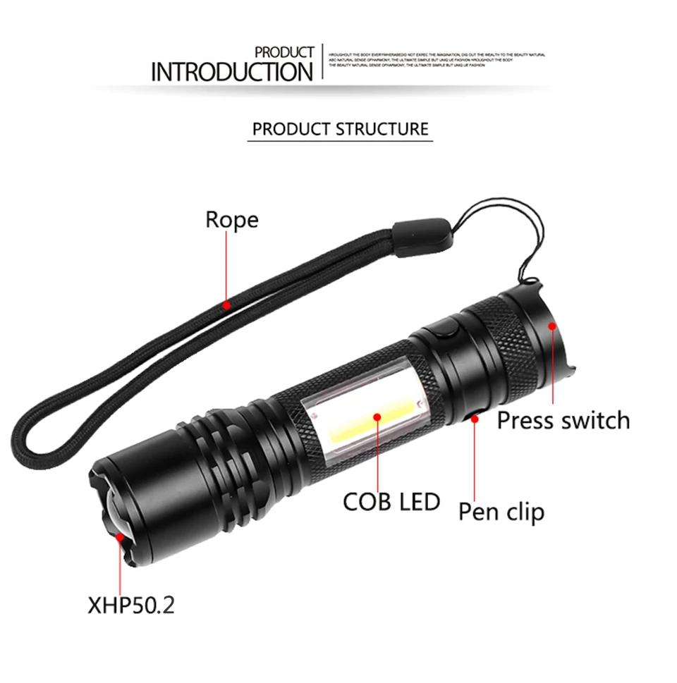 XHP50.2 светодиодная вспышка светильник 4 ядра встроенный 18650 Usb...