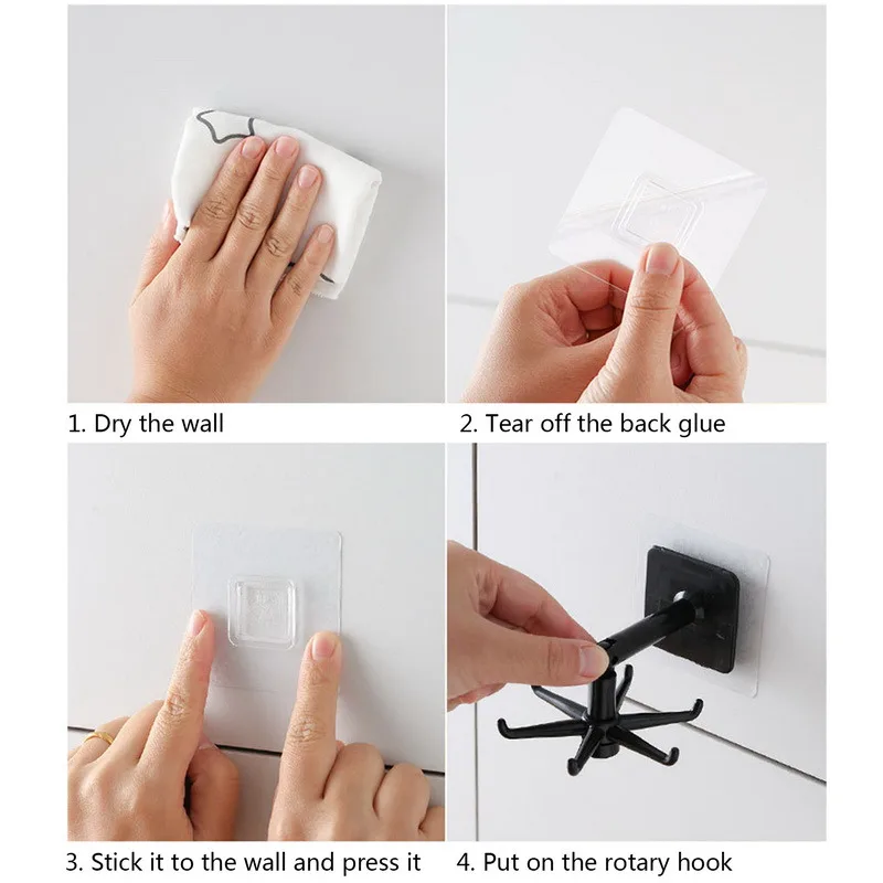 Процесс установки: Найдите чистую и ровную стену и протрите ее, затем нанесите пластырь, затем подключите крючок через 24 часа и используйте крючок, чтобы повесить предмет через день.