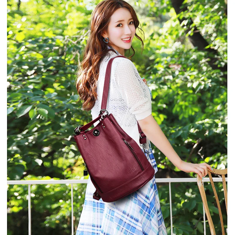 2020 женские кожаные рюкзаки, многофункциональный женский рюкзак, В...