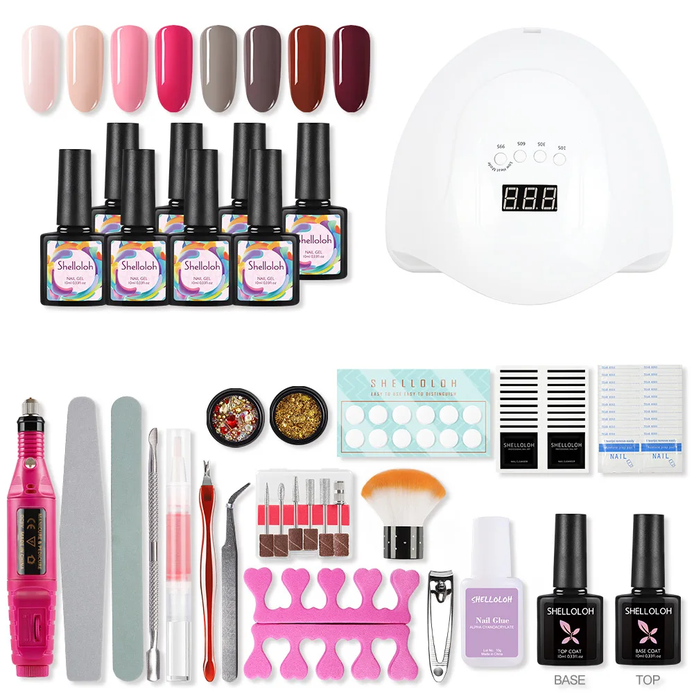 Набор для маникюра SHELLOLOH с УФ-светодиодсветодиодный лампой, аппаратом для маникюра, базовым и верхним покрытием, инструменты для маникюра, Гель-лак для ногтей
