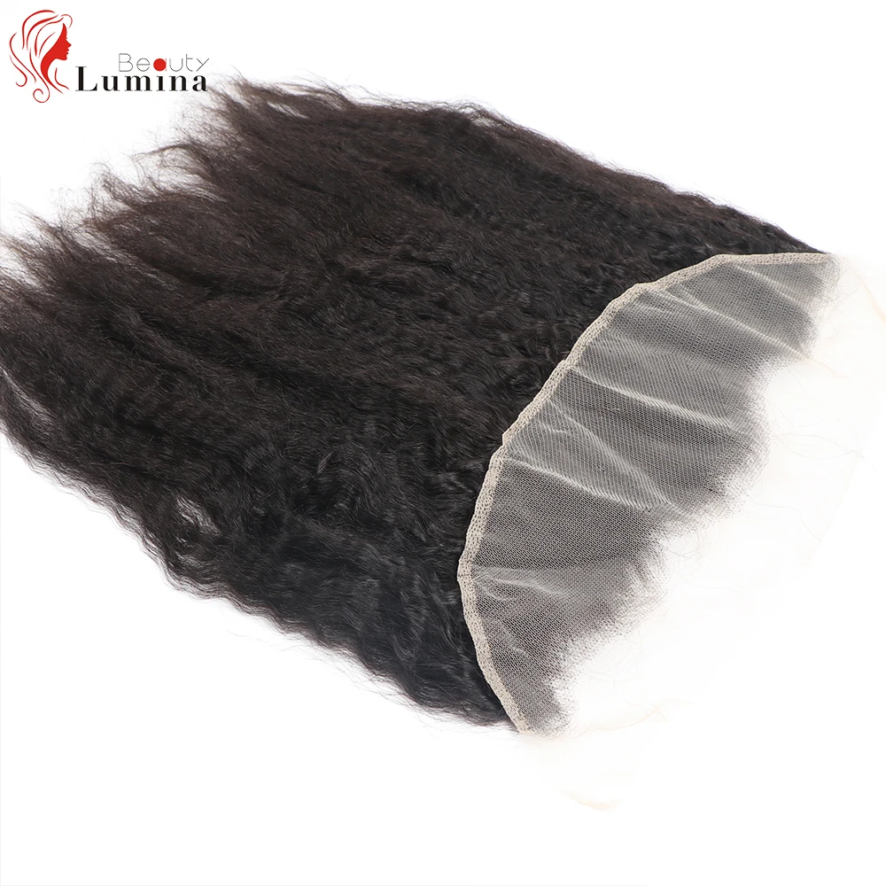 Прозрачные курчавые прямые фронтальные бразильские волосы Remy, предварительно выщипанные человеческие волосы Yaki, кружевная застежка только 4x4, кружевная застежка